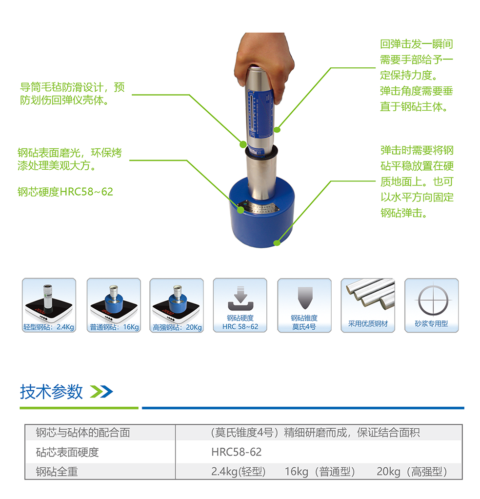 本标准校验钢砧适用于普通中型回弹仪(含数字回弹仪)、砂浆回弹仪、测砖回弹仪和高强型回弹仪,是进行回弹仪校验的必备检验工具,种类分为混凝土型、砂浆专用型、高强专用型等。表